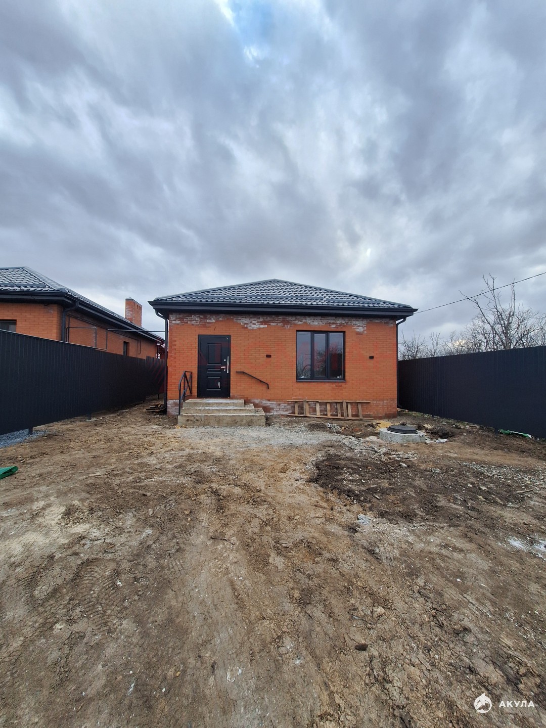 Новый дом. постройки 2025 года. 81 кв.м большая кухня-столовая. Три спальни. санузел совмещённый. прихожая-коридор. в доме вода. свет. газ. тёплый пол. стены оштукатуренны под обои. на участке 4 сотки. фасад выходит на одну из центральных улиц с твёрдым покрытием круглый год. Все городские коммуникации находятся в 5 минутах езды на авто.