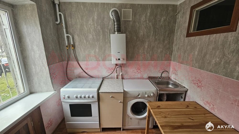 Кухня оборудована всем необходимым: газовой плитой, холодильником и стиральной машиной.