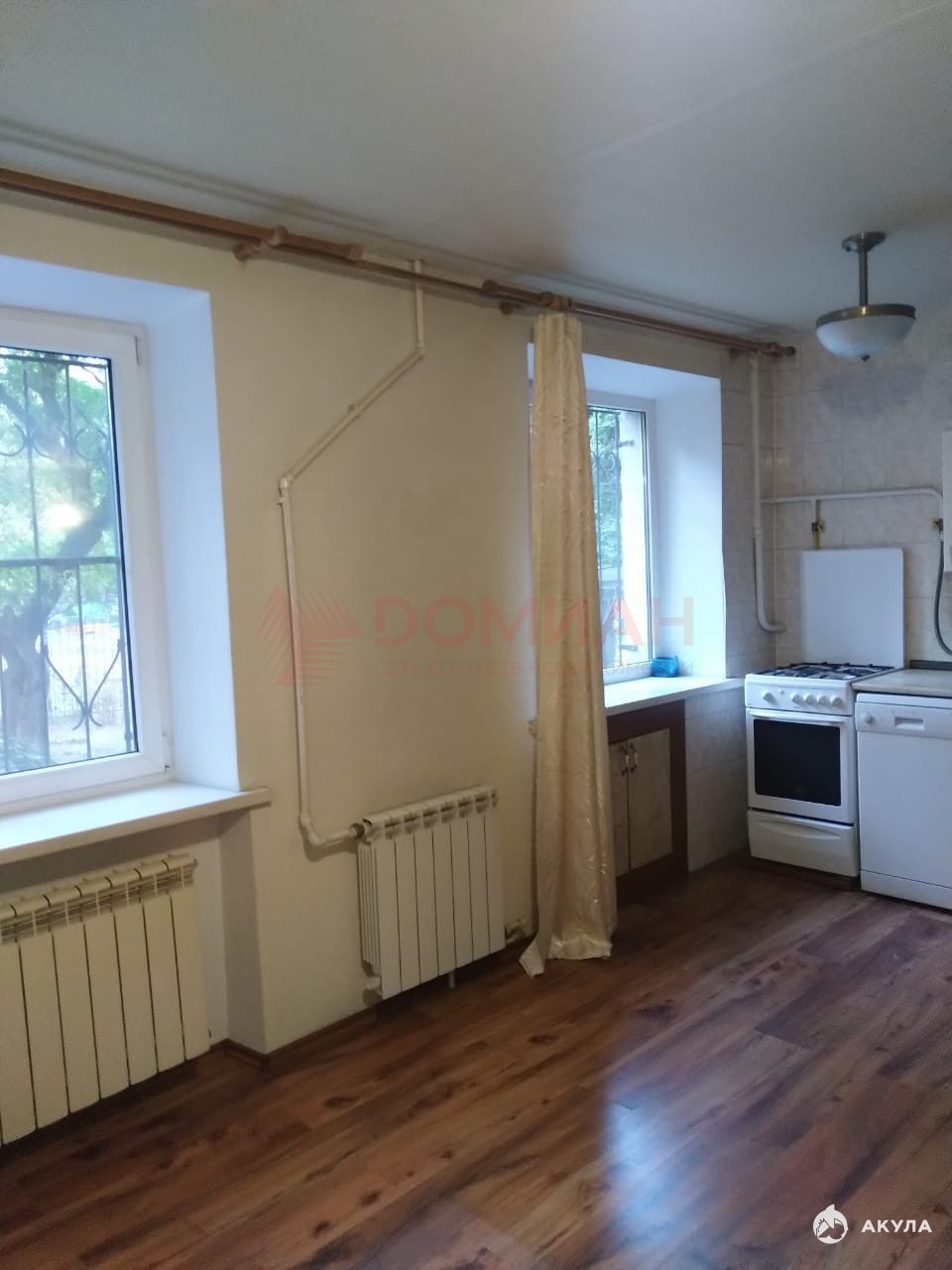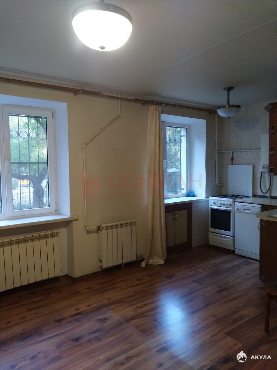 Квартира состоит из большой кухни-столовой и двух смежных комнат. В квартире хороший ремонт: заменена вся проводка, водопровод и канализация. Качественные межкомнатные и входные двери, металлопластиковые окна, ламинат высокого качества, санузел с теплым полом, кухонный гарнитур, посудомоечная машина. Красивые решетки на окнах.