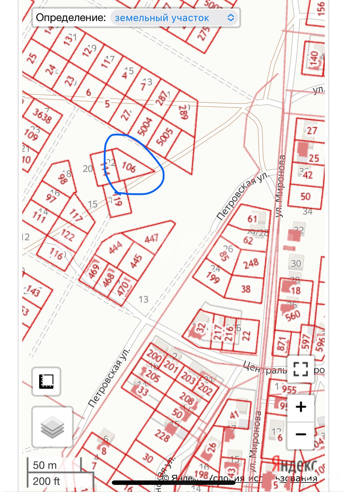 - Площадь участка